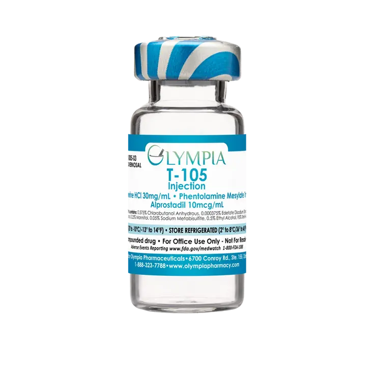 A compounded injectable solution combining three synergistic vasoactive agents for severe erectile dysfunction cases unresponsive to oral PDE5 inhibitors. Delivers rapid, reliable erections through direct smooth muscle relaxation and arterial dilation.